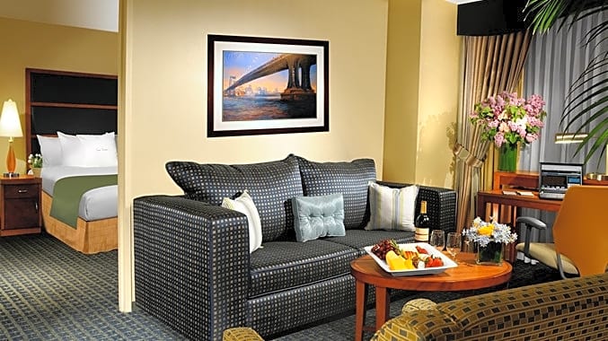 Ball Drop View Corner 1 Bedroom Suite - Kg Bd is 334 square feet and includes a king-size bed 150-183 width plus desk and cable tv.